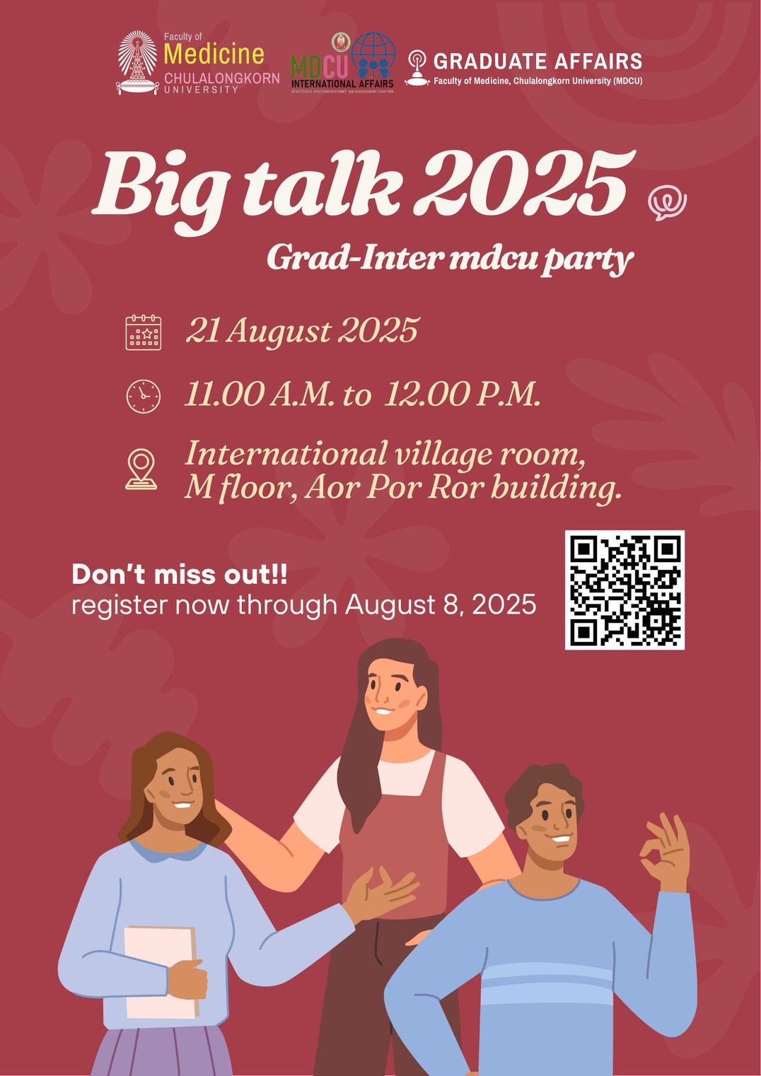 On Thursday, 21th August 2025, International Affairs, in collaboration with Graduate Affairs, hosted the BIG TALK 2025: Grad-Inter MDCU Party at the MDCU International Village. The Aor Por Ror Building was buzzing with energy as graduate and international students came together for this special event.
