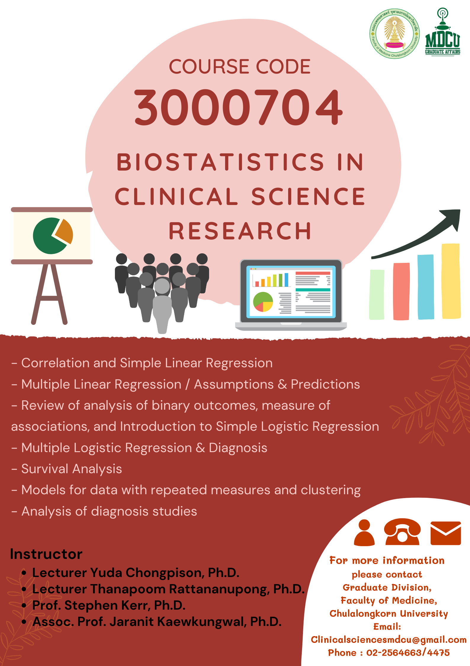 | 3000704 ชีวสถิติในการวิจัยทางเวชศาสตร์คลินิก |